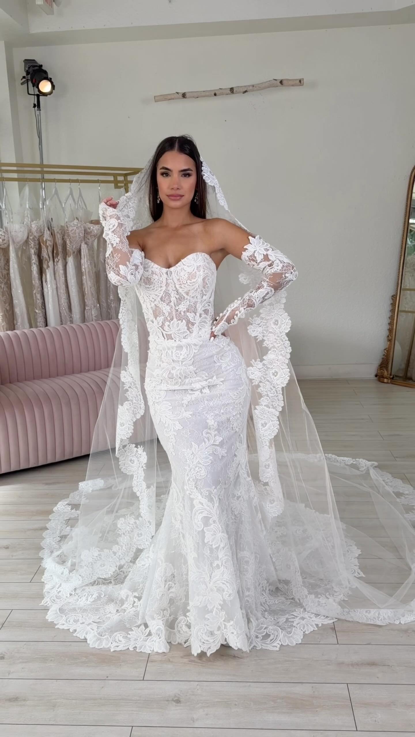Classic, traditional meets modern look of the long sleeve a wedding gown